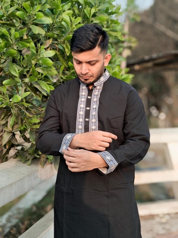 প্রিমিয়াম এমব্রয়ডারি কালো পাঞ্জাবি – এলিগ্যান্ট ও ট্র্যাডিশনাল ডিজাইন